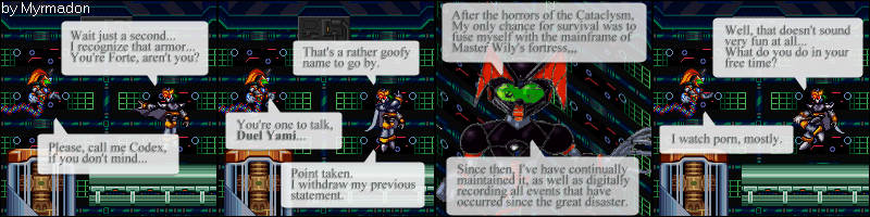 My next target will be sprites. First off: Can we please knock off the recolours? Bob and George have about four repainted Megamen. Of course Ravy, Uni and Ron are the only characters that are not Megaman recolours. But, I heavily edit my Megaman recolours. Take a look at Becky and Toni. I give Dave Anez kudos on his character Fisty: that is one cool looking edit/recolour.