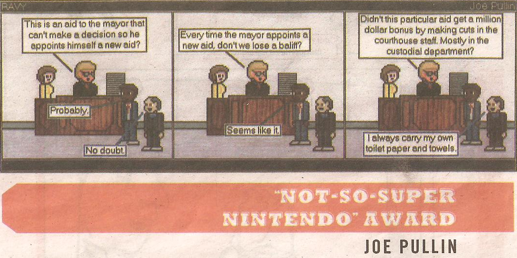 Last year one of the local newspapers ran a "bad cartoon" contest. I was all over that. I must have been one of a few to actually send some in because I was chosen to be published. I guess I can toot my own horn here and say this: How many sprite comics can say that they have been published in a newspaper without having to pay the advertising fees?
