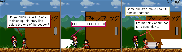 I did a lengthy 500th comic special of which I was only able to salvage about five comics for the main line. The reason for the drastic cuts was because I could not get anybody's permission to use their characters. These two were so funny, I had to show them off. I just whited out the character that could get me in trouble.