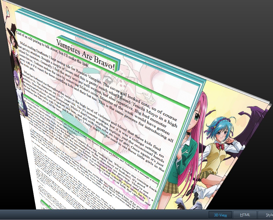 In closing, I am enjoying the Rosario Vampire series. I like the way the characters are being developed. Each one is clearly defined. The artwork is not overly complicated. I can easily tell what is going on in each panel. The translation is been pretty good and smooth.