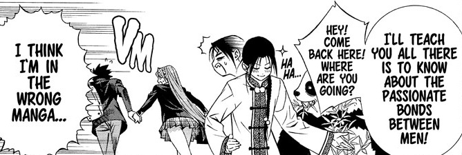 Fangfang on the other hand. I was against him for various reasons. The first one was because I thought he was going to be a gay foil to the girls. I'm not into boy/boy manga, I like chicks, real chicks (chicks who are chicks since birth.) Plus I was afraid that the one gay male character was going to be a negative stereotype and get treated to endless rounds of ass whuppin by the other girls. Then that's completely forgotten and he's turned into a perverted lolicon fetish type, and then just someone to get the crap kicked out of him at inconvenient times.