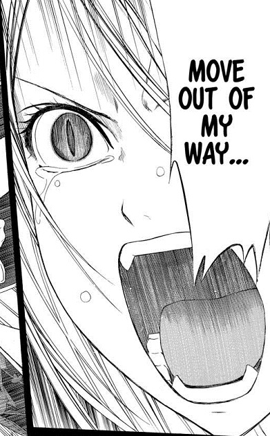 Talking about this issue let's get the one thing I didn't like at all out of the way first: the gore and viscera. One of the things that has made me kind of queasy through out the entire series is the blood. I understand that this is a monster manga but for the most part it's focus was romantic-comedy. Lately we have been treated to a big heaping doses of story telling. Along with that the realism has been getting more and more detailed. Now it is getting to a point that maybe going over the line even for me. There's a scene in which Moka's mother, Akasha, is cut in half and rather graphically depicted. Then later we see her laying down with some spilled guts.